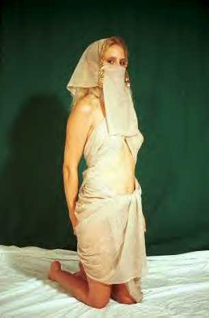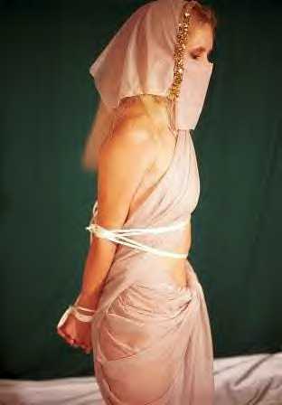 a heavy leather collar is placed on her neck. The only exception is a small veil