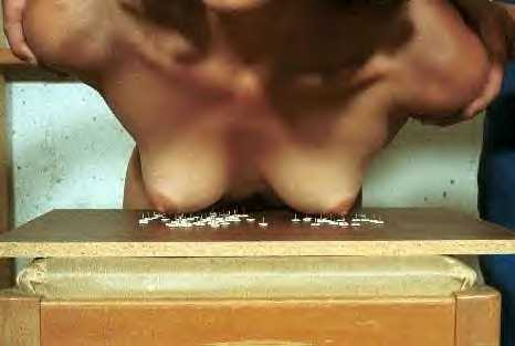 fastened tightly behind their backs and they were pressed into the tacks fairly